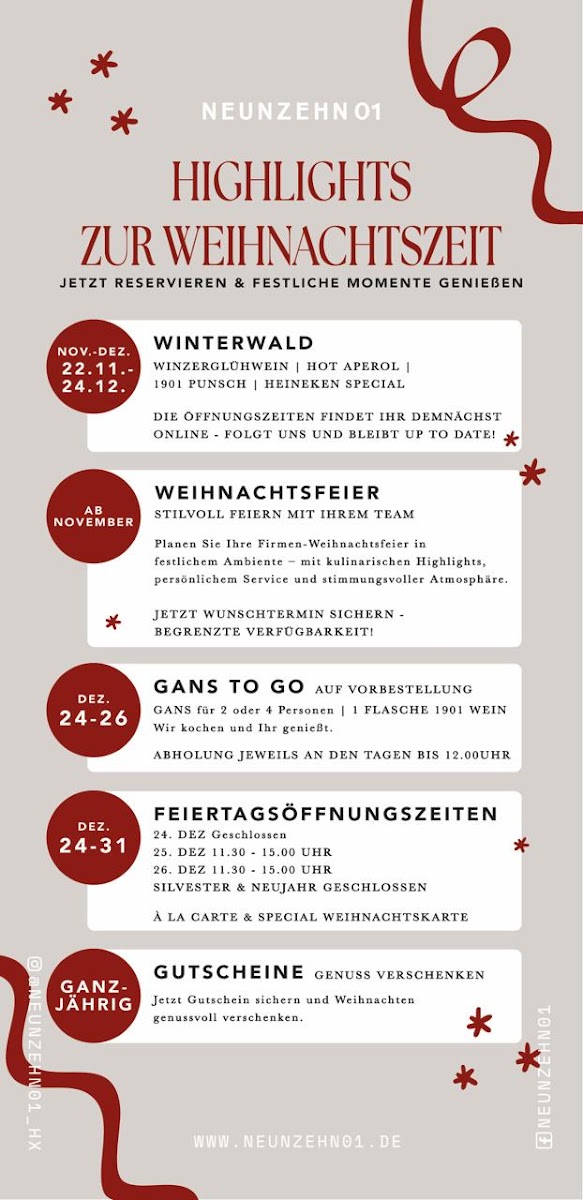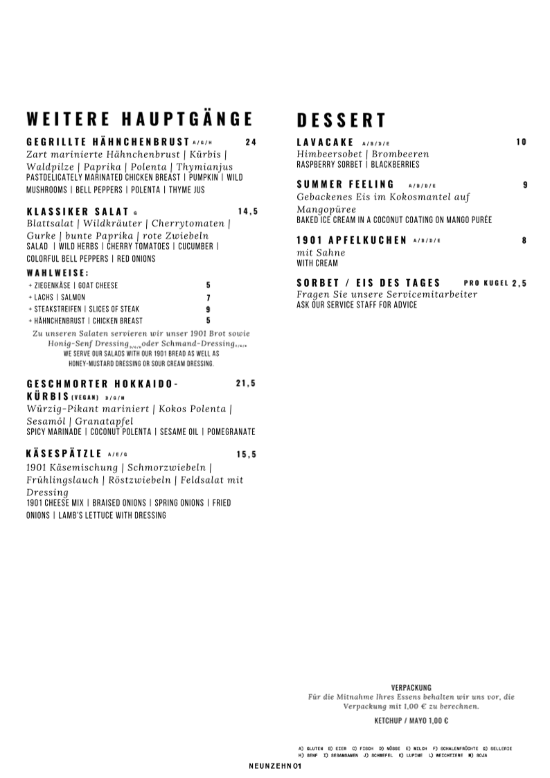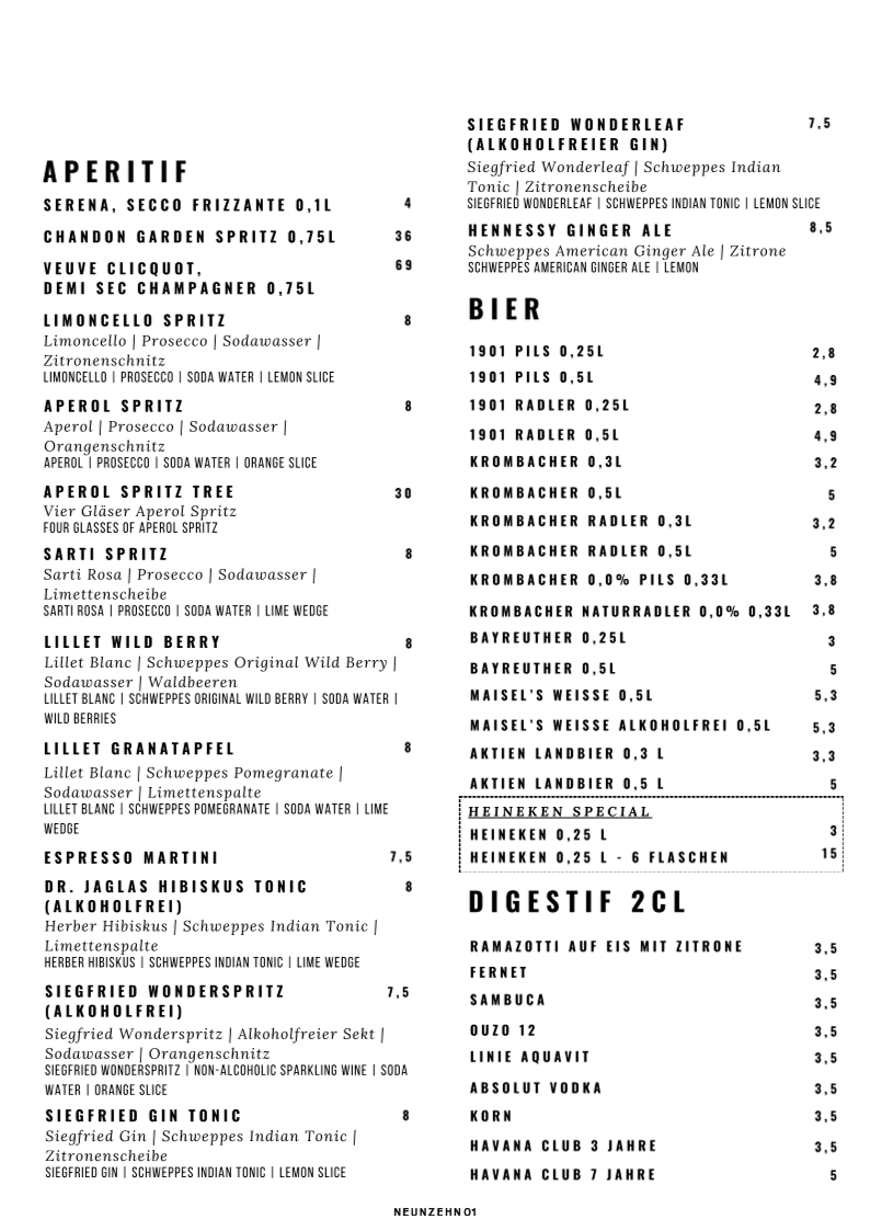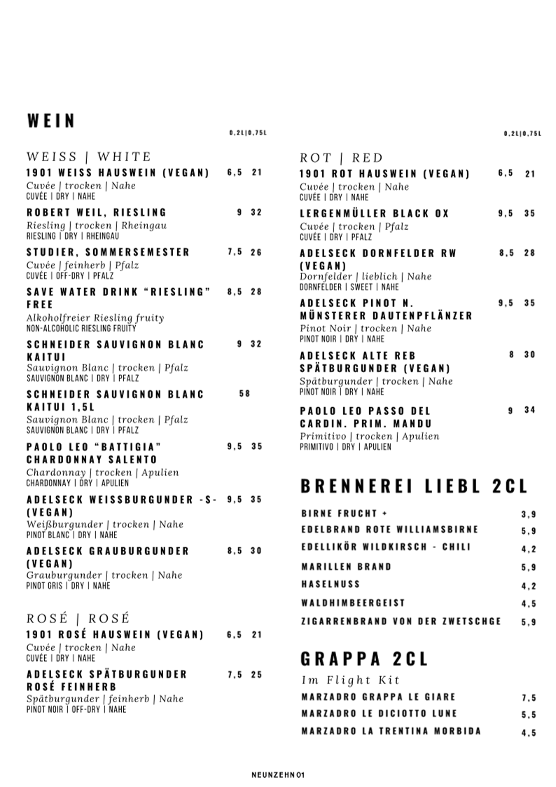 The service is consistently praised for its attentiveness and warmth, creating a welcoming environment that complements the stunning food. Diners can savor their meals outdoors under graceful trees or enjoy the modern, newly renovated interior. Whether it’s a casual snack or a gourmet feast, NEUNZEHN 01 promises to exceed expectations.