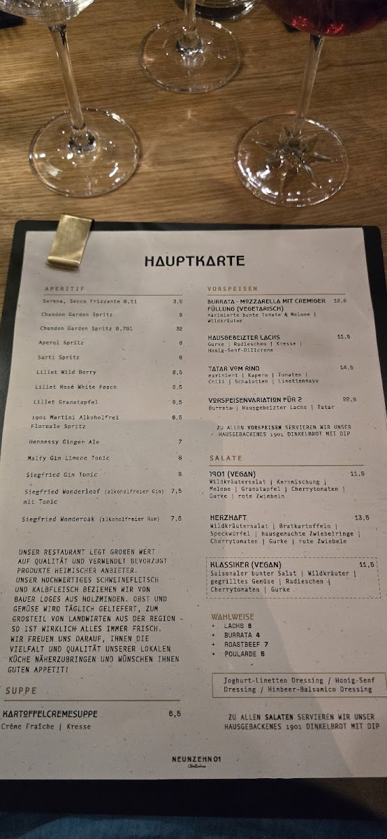 Welcome to NEUNZEHN 01, a hidden gem nestled in Höxter, Germany. This delightful restaurant, located on Hennekenstraße 10, boasts a vibrant and inviting ambiance, perfect for lingering over a meal. Customers rave about their experiences, highlighting the freshness and creativity of the dishes. From the exquisite grilled salmon to pasta adorned with seasonal ingredients like green and white asparagus, every plate is a testament to culinary artistry.